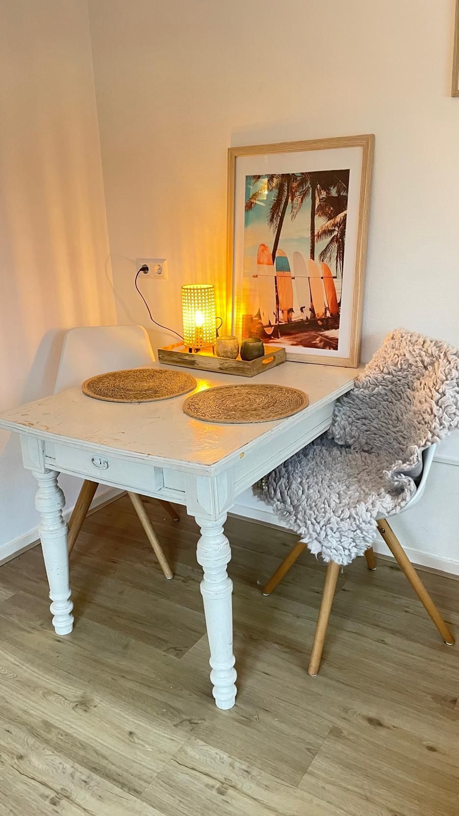 Upstairs is a spacious bedroom with two beds each 90x200 with their own duvets and many pillows. There is a dressing table with mirror and a large wardrobe, you will also find a large chair that can be made up if a small child comes along. Please note: the house is not adapted for children. High chair or bed is not available. There is also NO stair gate at the stairs.